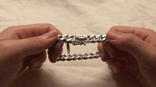 3. 팔찌 길이 (체결 시, 중복되는 길이 제외) = 잠금 해제 후 펼쳤을 때, 체인에서 혀장식 부분까지 (박스 잠금 장치 제외)