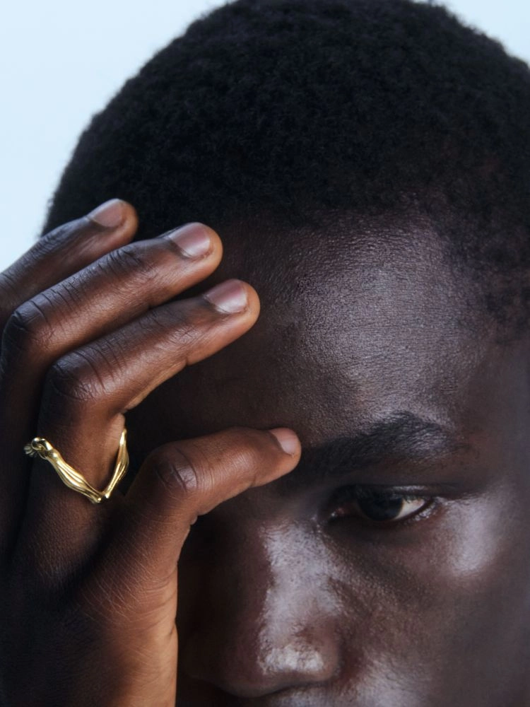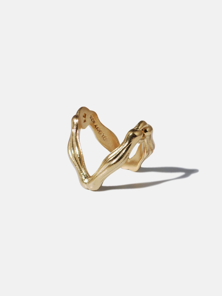 외곽의 유기적인 쉐입과 굴곡진 패턴으로 연결되어 있는 W자 쉐입의 디테일한 링